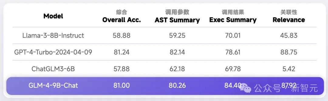 在UC伯克利函数调用Leaderboard上,9B模型函数调用能力,即可媲美GPT-4-Turbo。