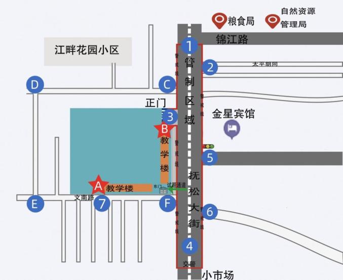(3)6月10日6:30-11:30,实行全时段执勤,对汪清四中考场周边道路进行封闭。