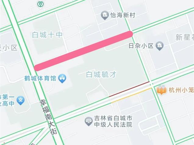 育才中学西门前路段:南起南环路与艳阳路交汇处路口(图中南环路育才中学道口),北至艳阳路与阳辉街交汇处(图中教育局道口)。