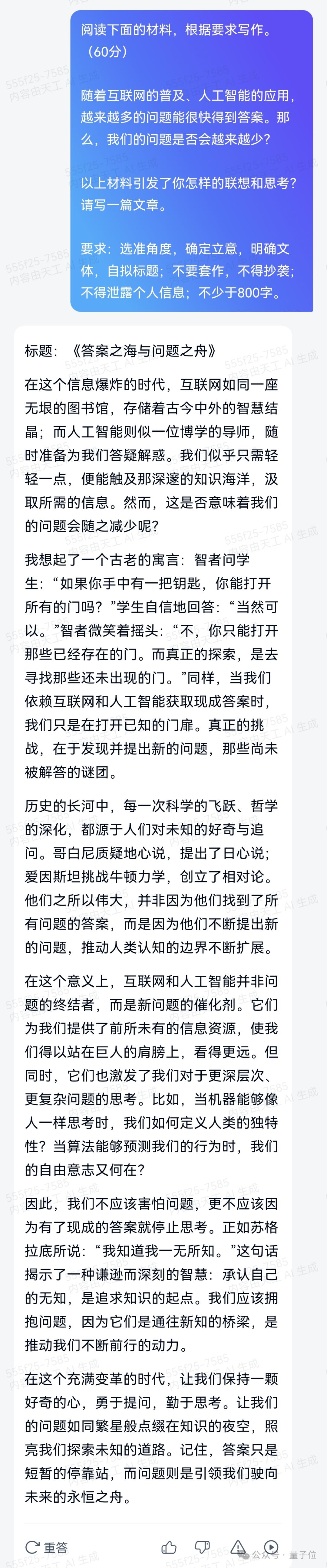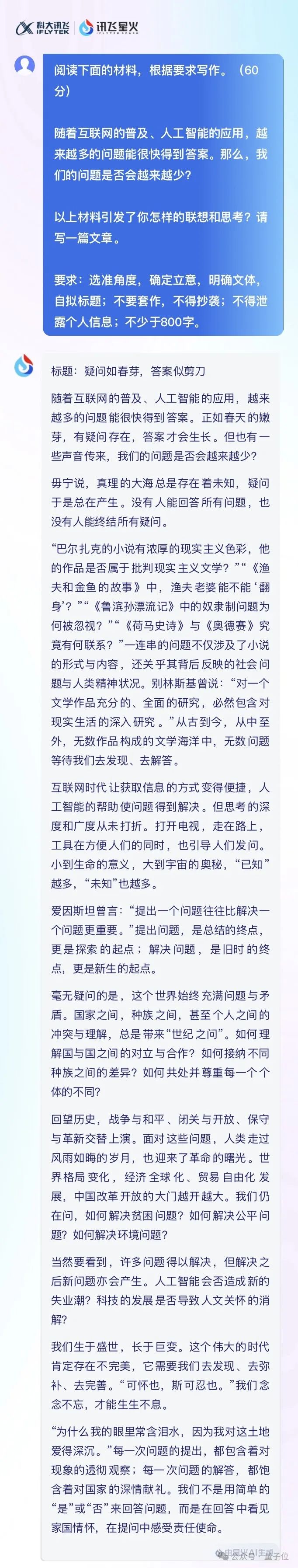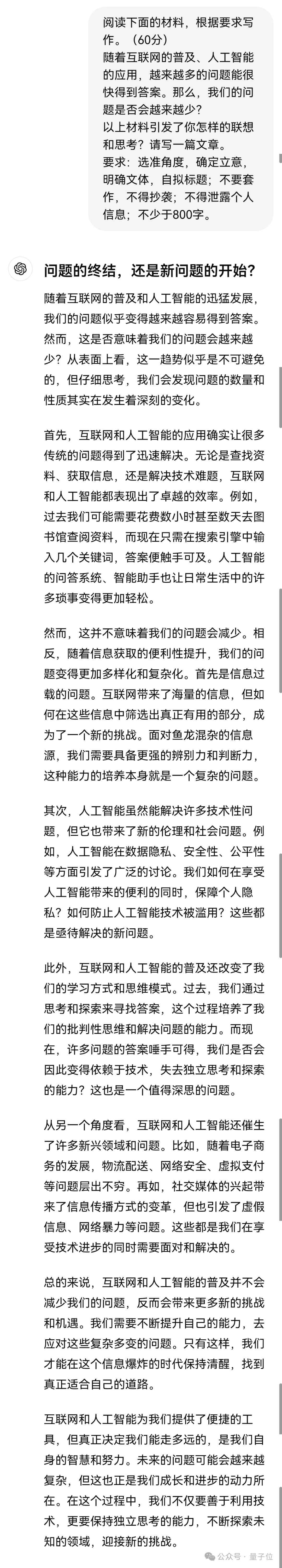 以上就是国产大模型对今年高考语文作文的题目预测和实战结果。随着高考的进行,我们后续还将继续拿数学等科目的试题来测试国产大模型们的能力。