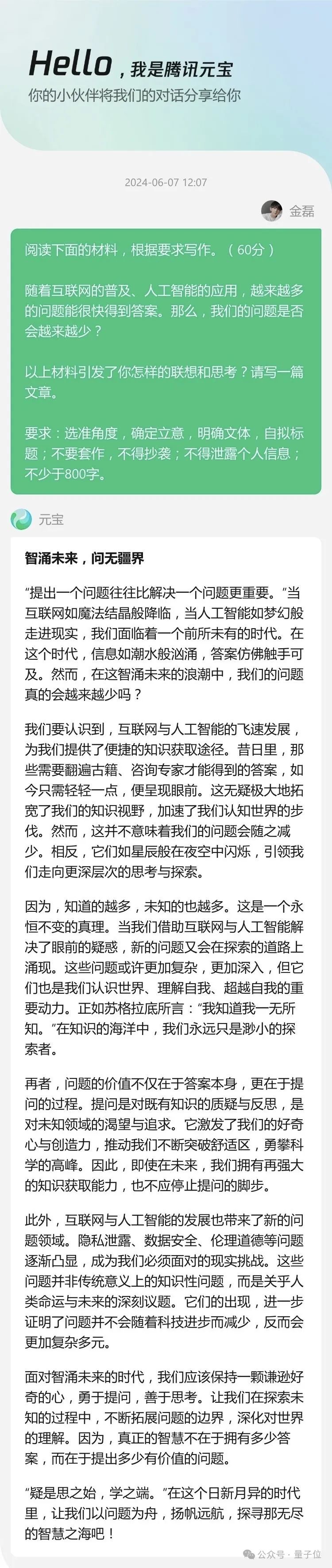 国产大模型,大战高考2024我们评测的方式也是比较简单,直接将这次语文作文的题目,原封不动“喂”给AI们。