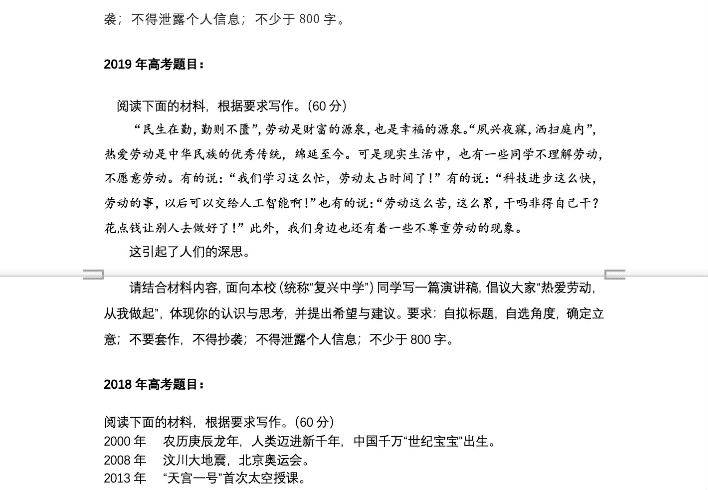 我们将近十年的全国甲卷、全国Ⅰ卷的作文题目都汇集到了一个Word文档中。