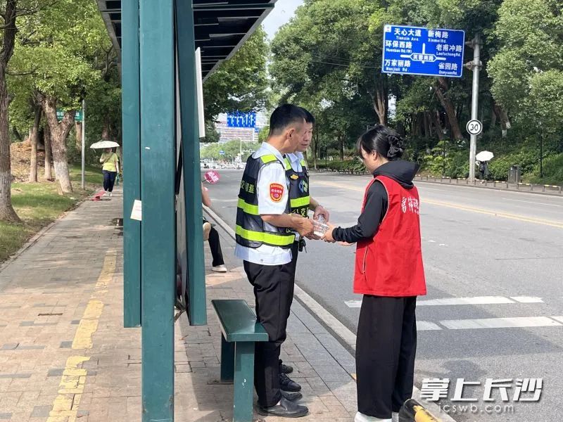 天心青年志愿者为坚守岗位的交警送上矿泉水。下一步,共青团天心区委将继续深化“青心筑梦”活动,拓展服务内容,创新服务方式,不断提升服务质量,以全方位、人性化的服务为青年群体办更多实事。