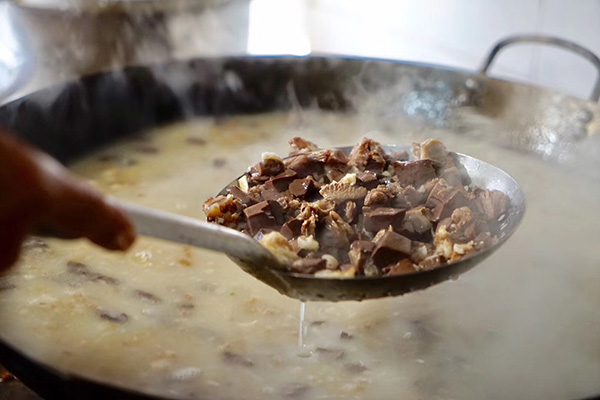 零下10摄氏度吃涮肉,零下30摄氏度呢?中国东北小城“小市”,午夜屠羊,剔骨带肉熬汤,三五只大羊出几十斤汤,羊杂羊血烫熟,羊腩剁成小块,堆成小山。清晨当街支大口粗铁锅,白烟缥缈,羊头狰狞,摆在店口,以示新鲜,羊香于风中凛冽。喘着白烟的人们,裹成圆球,踏着残雪,进店落座。