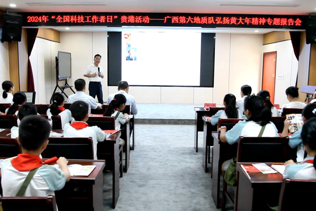 5月30日,由自治区科协主办,贵港市科协及广西第六地质队承办的2024年“全国科技工作者日”贵港活动——弘扬黄大年精神专题报告会在广西第六地质队举行。活动旨在大力弘扬科学家精神,加强宣传与教育,引导广大青少年树立远大理想、培养深厚爱国主义情怀,在全社会营造尊重知识、崇尚创新、尊重人才、热爱科学、献身科学的浓厚氛围。