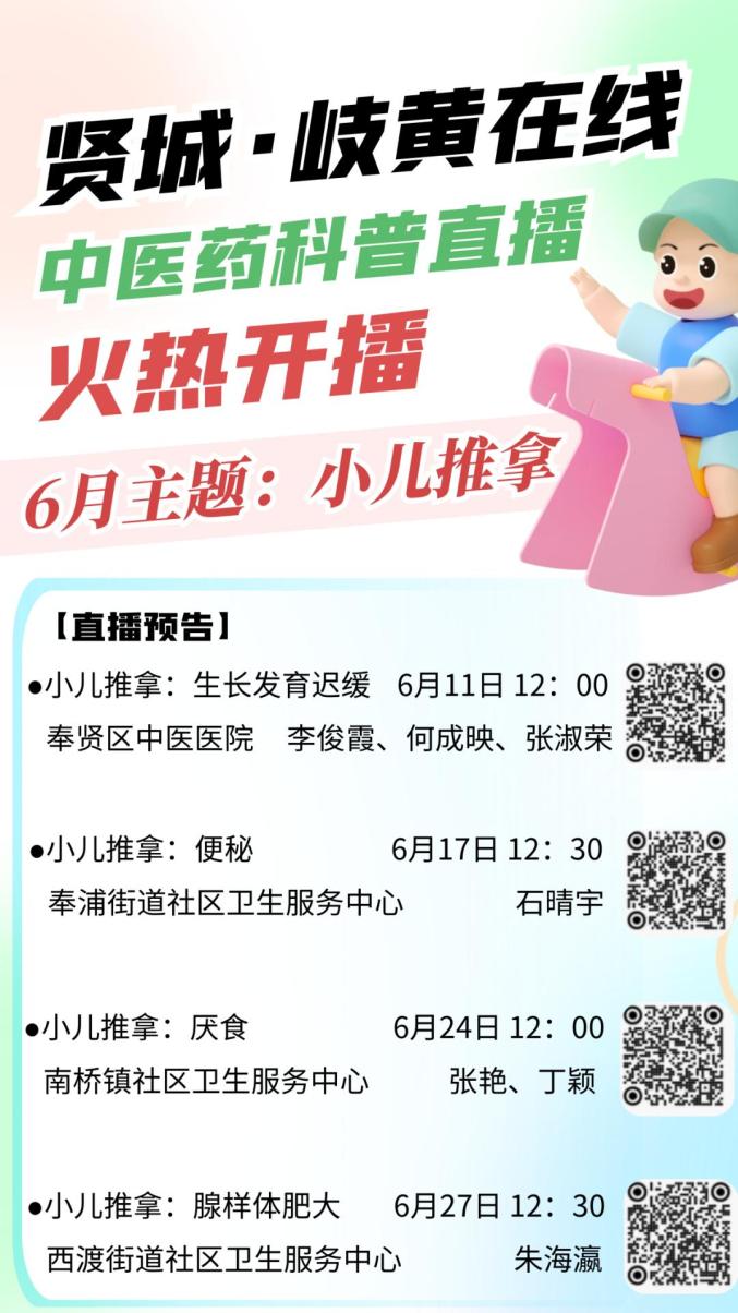 原标题:《“贤城·岐黄在线”中医药科普直播火热开播!6月主题“小儿推拿”抢先看!》