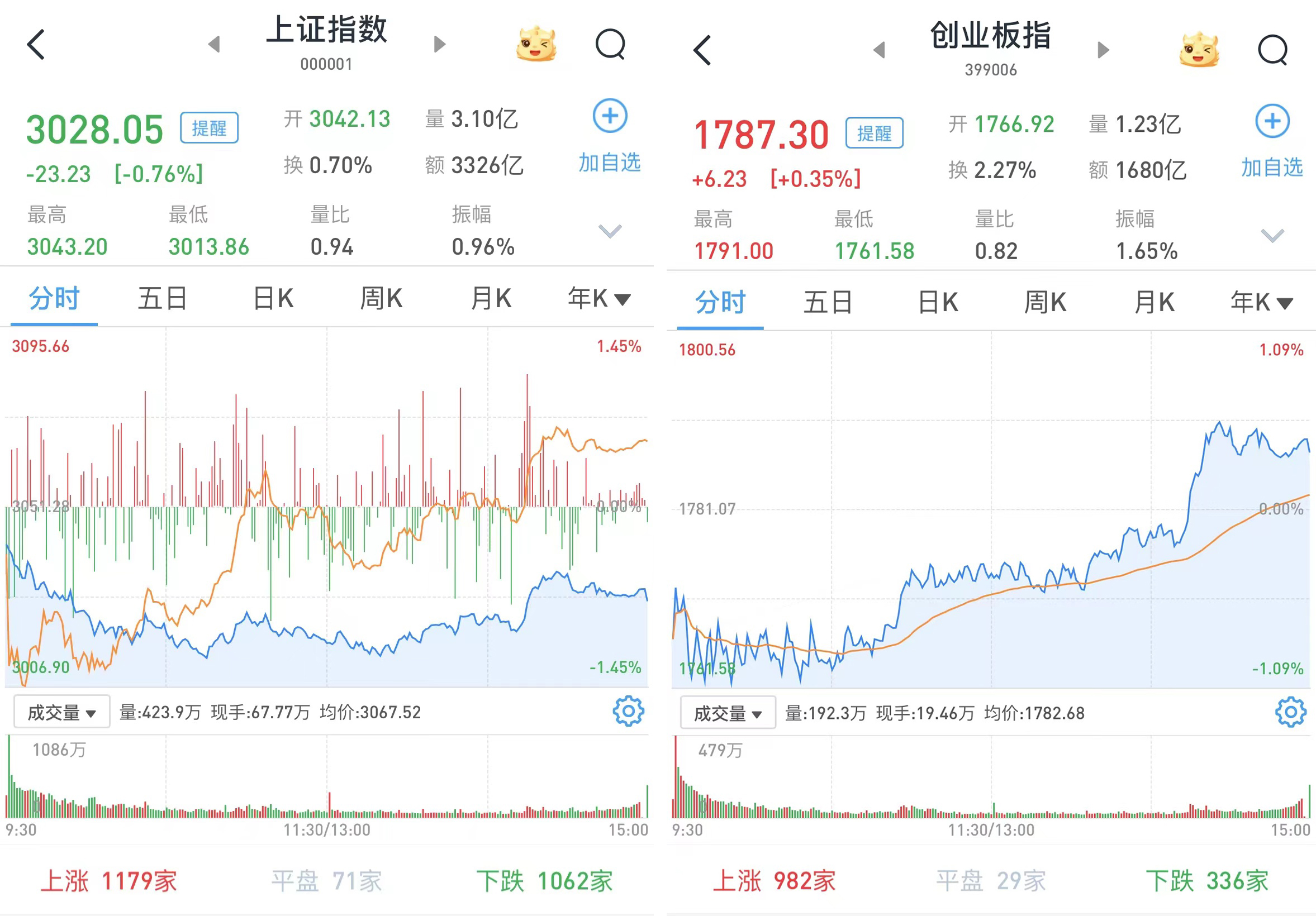 沪指跌0.76%,创指涨0.35%:两市成交7029亿元,芯片产业链逆势爆发