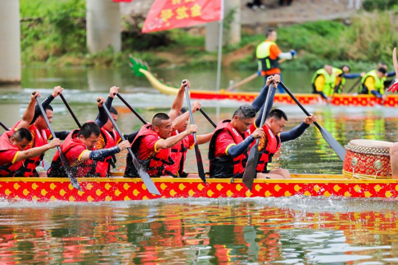 6月7日,靳江河畔赛龙舟。图片来源:掌上长沙