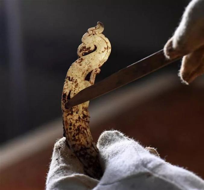 我们平时看到的馆藏出土古玉基本都是出土后摆放在博物馆里的样子,亦或者是躺在博物馆的库房里的样子,很少看到古玉出土时的场景。其实古玉出土的时候躺在泥土里的样子也是非常美丽的,并不是我们很多人想象的脏兮兮的样子。下面我们就来看看一批深埋地下前年的精美玉器重现世间的精彩瞬间!