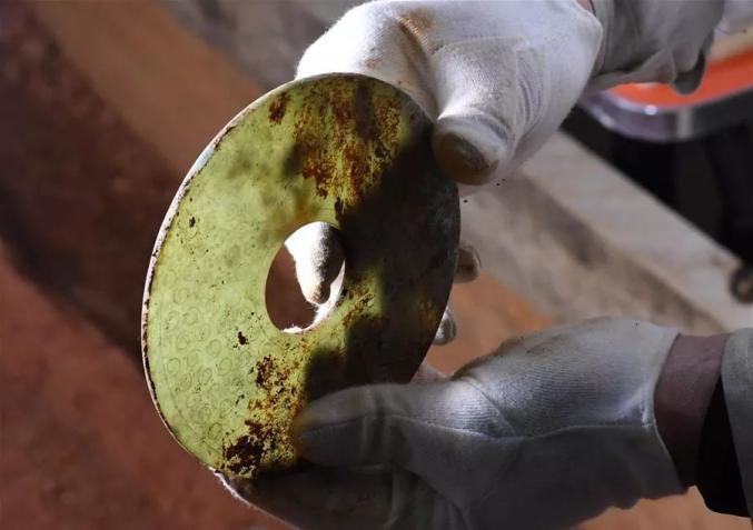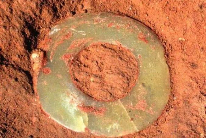 N16M1(牛河梁遗址第16地点1号墓)玉璧的出土状态
