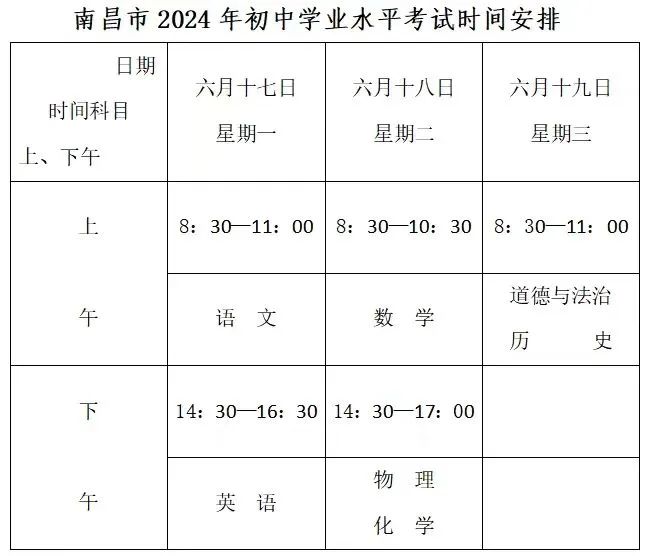 为确保考试平稳顺利,南昌市教育考试特别提醒