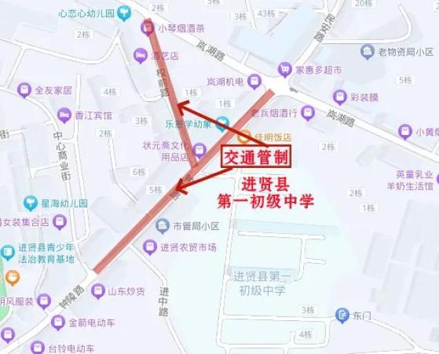 管制路段:建设东路朝阳社区门口至教育路红绿灯路口,禁止所有车辆通行;教育路与建设东路交叉口至教育路与向阳路交叉口,禁止所有车辆通行。