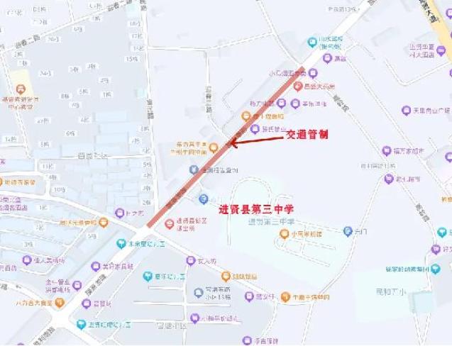 交管大队在中考期间将对进贤一中高中部考点周边路段(新一中信号灯至校门口至西边安置房路段:具体为中山大道由北往南车辆在新一中信号灯处禁止右拐,中山大道由南往北在新一中信号灯处禁止左拐)实行交通管制,禁止车辆通行;建议社会车辆绕行,给您带来的不便,敬请谅解。