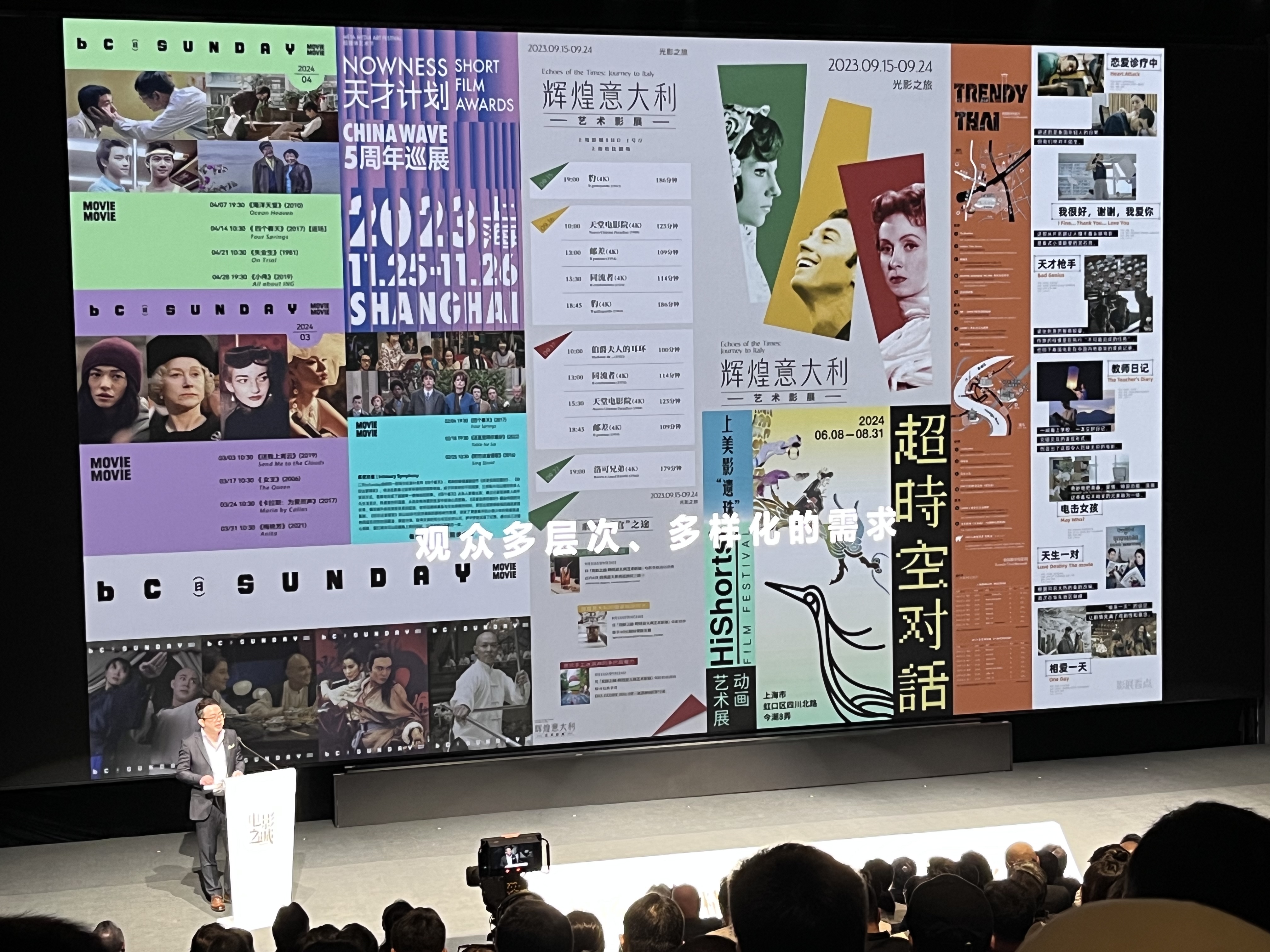 “2022年上海观众曾贡献了《爱情神话》上映四成的票房;2023年《芭比》上映首周,上海影院给出了高出全国一倍的排片;2022年到2024年上映的19部动漫影片,上海地区的上座率是全国第一。百老汇院线旗下Movie Movie电影院策划的经典电影放映在影迷中广受好评……”上海市发行放映协会会长戴运谈到,“这些数据和案例是市场化的选择,是内容与观众的双向奔赴的表现,也让我们看到上海观众多层次多样化的需求。”