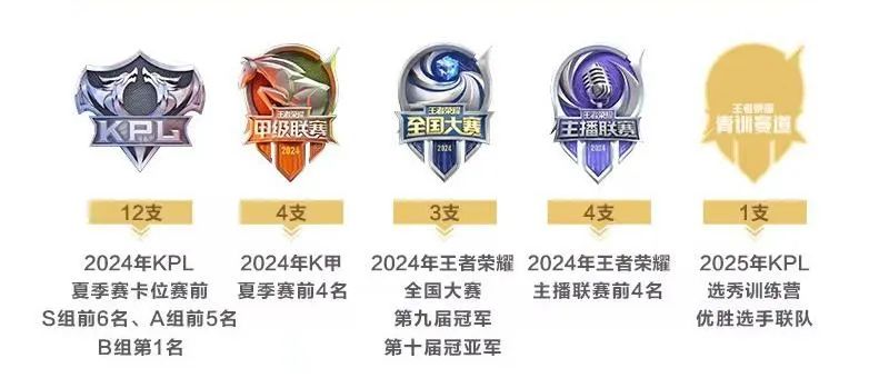 KPL赛道 (12支):截止2024年KPL夏季赛卡位赛进行前的S组前6名、A组前5名和B组第1名,共12支K甲赛道(4支):2024年K甲夏季赛前4名