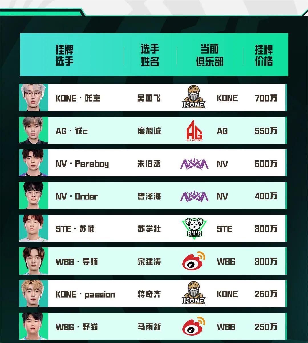 2024年秋季转会期「挂牌期」已结束,共有71名选手提交挂牌申请。值得一提的是,“PEL第一人”Paraboy与“PEL千万先生”诚c均参与了挂牌,Paraboy挂牌价为500万,诚c的挂牌价为550万。除此之外,挂牌价比较高的选手还有700万的吒宝,400万的Order,300万的苏楠等。「竞拍期」将于2024年6月22日开启,2024年6月23日结束。VCT CN联赛第二赛段已于6月15日开启