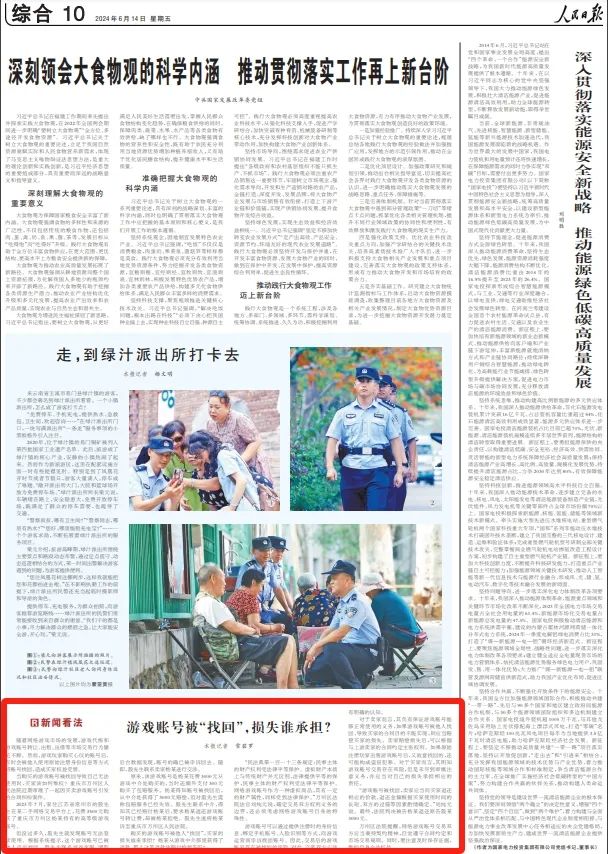 原标题:《人民日报丨游戏账号被“找回”,损失谁承担?》