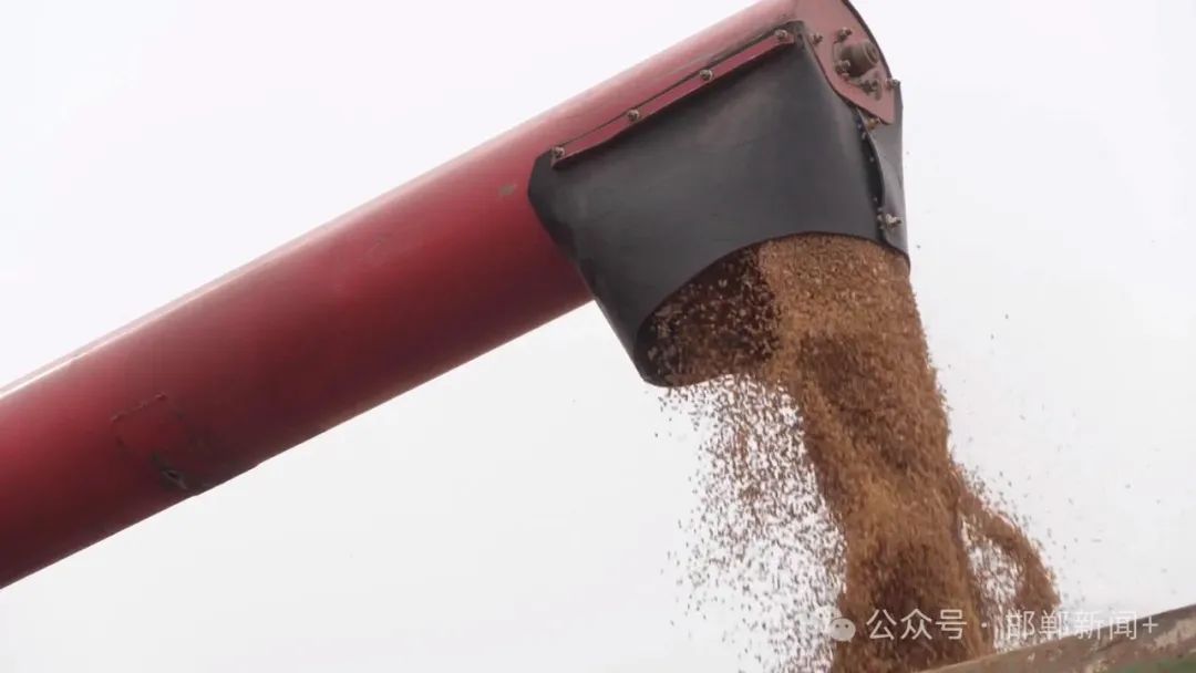 从6月初以来,磁县小麦经过机收大会战,到6月10号全面完成小麦收割任务。在磁县小寨村麦田,联合收割机在田间不到10分钟便收满了仓。金黄的麦粒从仓中流出,让农民喜不自胜。