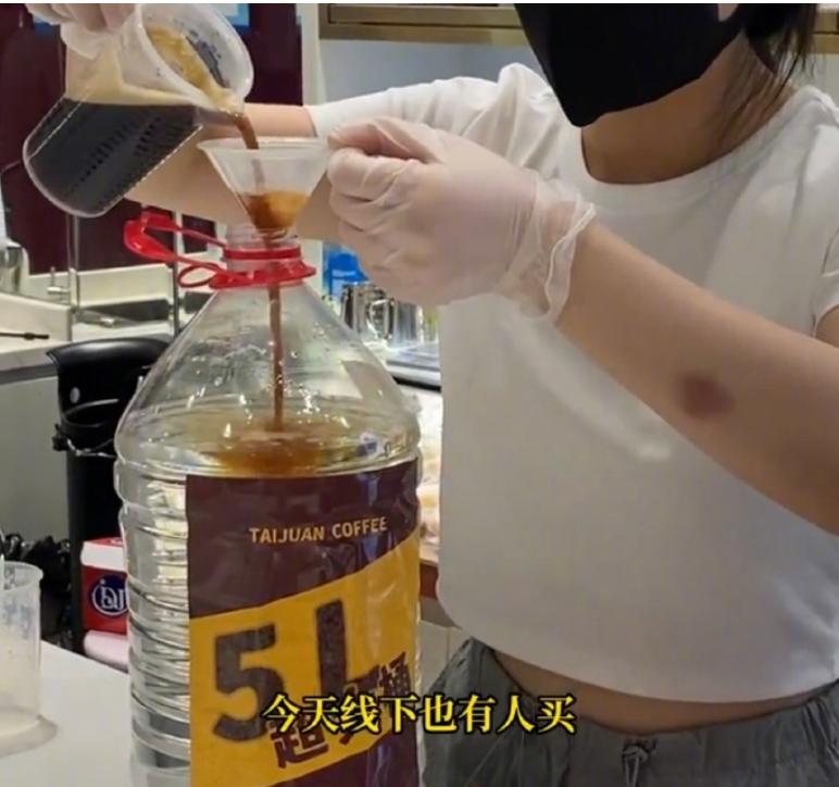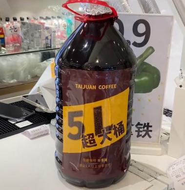 一些咖啡店甚至推出规格5L的超大桶咖啡,没点健身基础拎着都费劲。