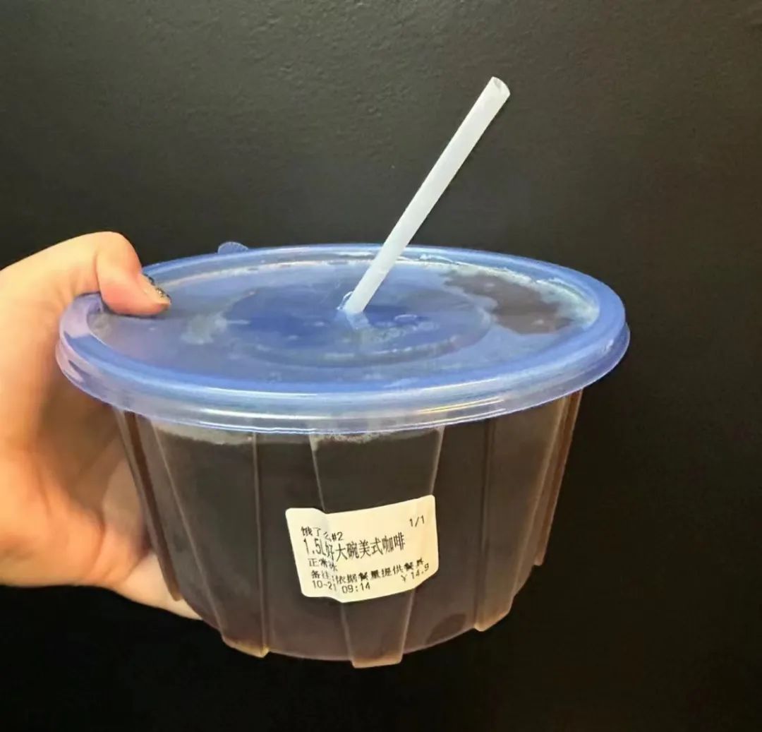 上海某店的1.5L大碗美式/图源:小红书@拒绝土土),已获授权起初也曾有网友表示拒绝:“不儿,您当这是打酱油呢?”