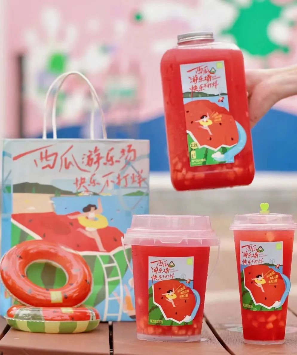西瓜系列按容量从小到大分别为16、24、39.9/图源:奈雪的茶往年只在健身房才会出现的“吨吨桶”,一度出圈火到了办公场景。