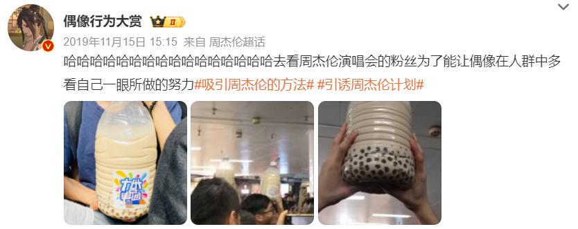 周杰伦演唱会上,曾有歌迷称其为“引诱周杰伦计划”。抓住这种心理,也有个别奶茶店尝试过推出超大桶产品。