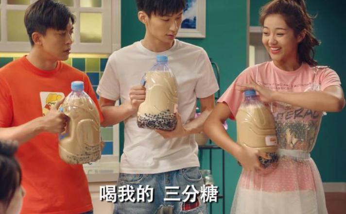 2020年播出的《爱情公寓5》中也出现过大桶奶茶饮品越出越大、越出越长的命运转折点,出现于桶装水果茶问世之时。