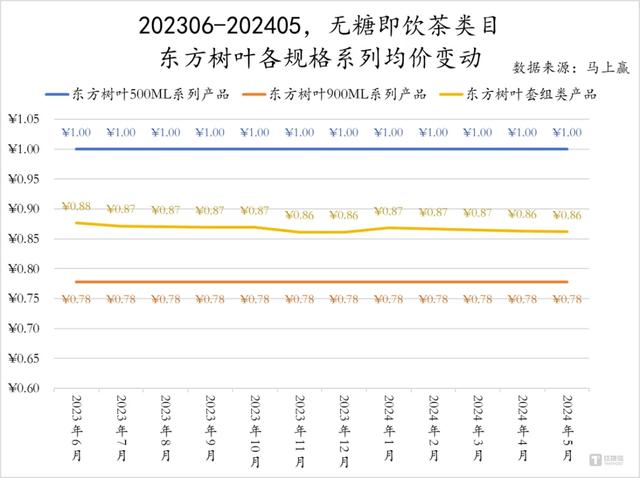 人气逆袭的东方树叶,也在2023年上线青柑普洱、茉莉花茶的900mL大瓶装,2024年又上线乌龙茶和黑乌龙的大瓶装。