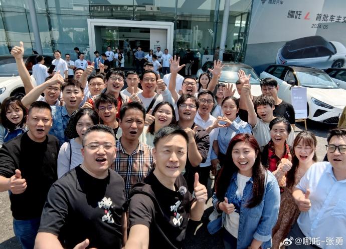 张勇和哪吒车主合影/图源张勇微博