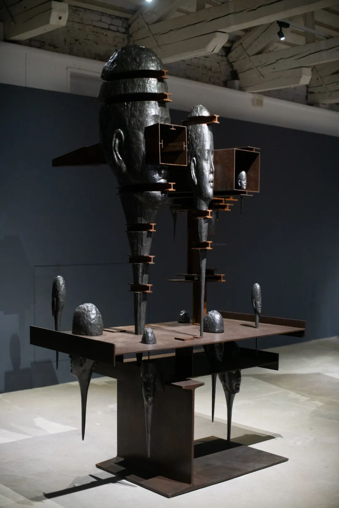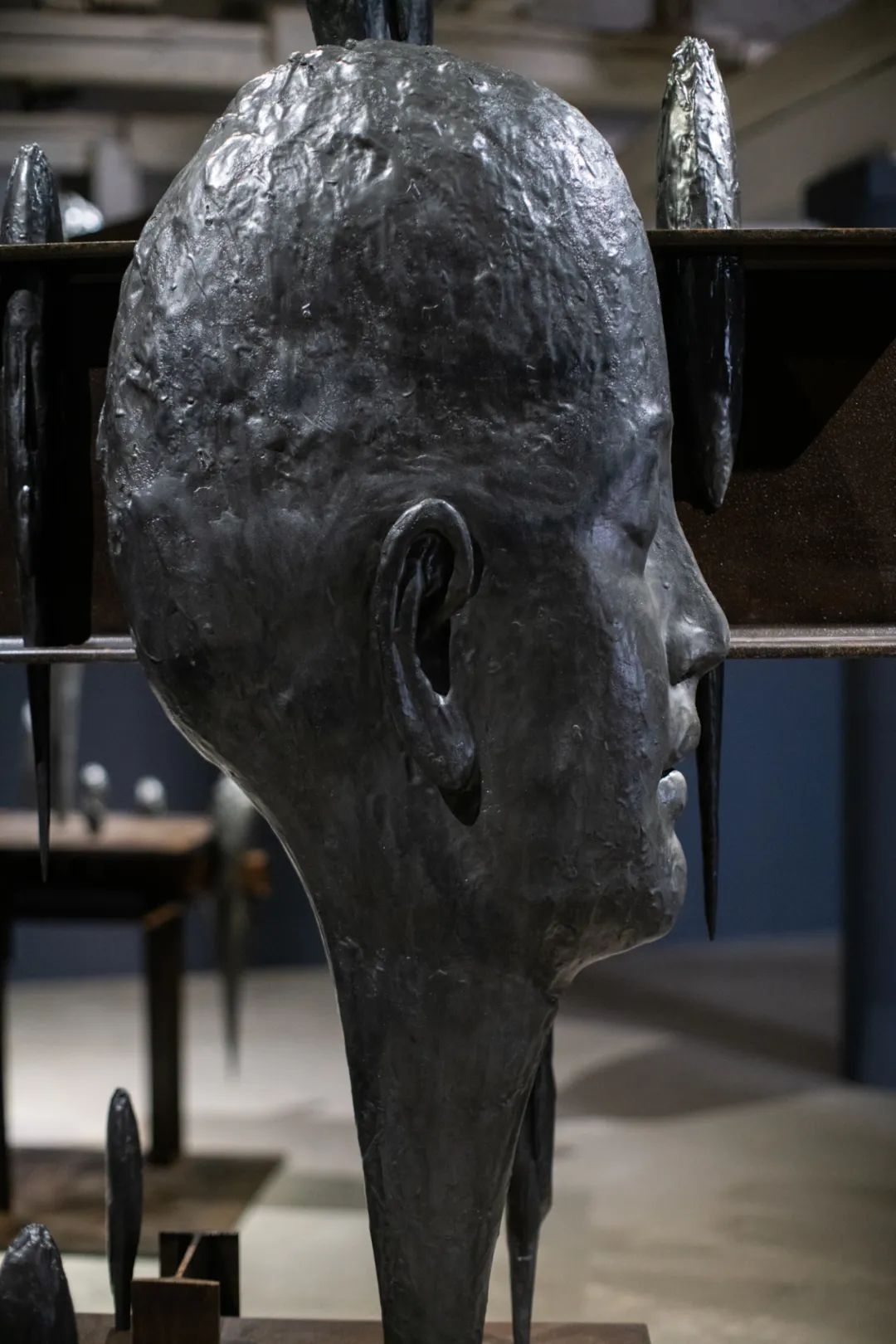 陈世英个展《超越》展览现场在一次访谈中,你谈到年轻时米开朗基罗对你的雕塑启迪,由此,你开始观察和学习西方文艺复兴雕刻技法。在艺术史上,还有哪些雕塑家、艺术家对你的艺术实践产生过影响?《钛坦》和《图腾》中那些拉长的宁静脸庞,使我想到了贾科梅蒂……