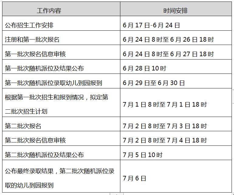 3.6月26日18时(第一次报名截止时间)和7月3日18时(第二次报名截止时间)将准时关闭报名功能,请各位幼儿家长定好闹钟,按时完成填报。