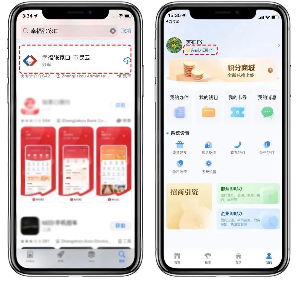 通过手机应用市场搜索“幸福张家口”下载APP,点击首页底部导航【我的】,注册并完成实名认证。