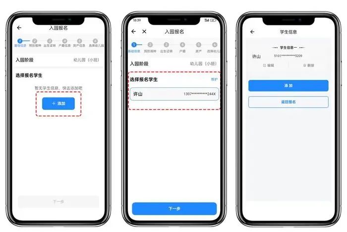 04 添加幼儿信息点击【添加】,根据页面提示完成信息填写。如有家有多个孩子,可连续添加。