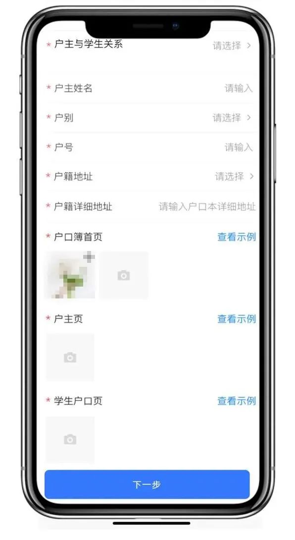 07 添加幼儿户籍信息根据页面提示,填写幼儿与户主相关信息,并拍照上传户口簿首页、户主页、幼儿户口页等。