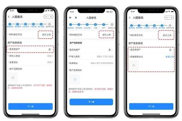 08 添加住房信息住房信息可【在线查询】,也可【自行上传】。有房产的,填写权利人姓名、坐落位置后,上传“房产证明材料”即可。住房证明材料包含不限于不动产证明、购房合同、自建房证明等。如无房产,上传房屋租赁协议即可。