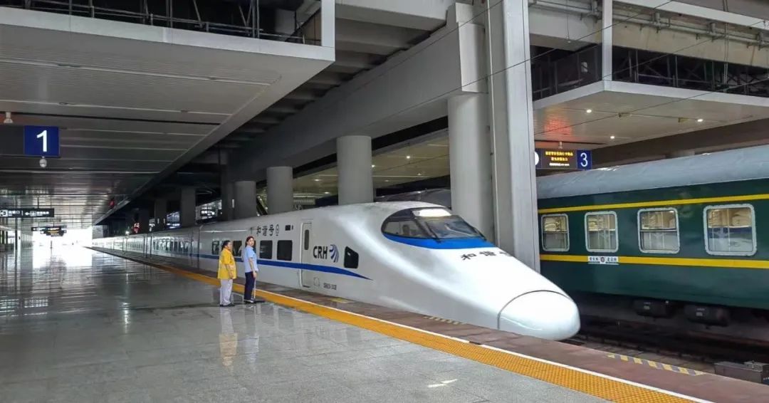 渝昆高铁渝宜段联调联试首发“和谐号”动车。从重庆西站出发,一路经九龙坡站、江津北站、永川南站、泸州东站、泸州站、南溪站,最终抵达宜宾东站。该检测车由CRH2A和谐号动车组担当,主要对渝昆高铁渝宜段进行ATP(列车超速防护装置)控车试验。这也是渝昆高铁渝宜段迎来的首趟和谐号动车组列车。