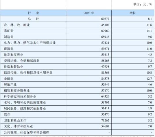 (三)城镇私营单位就业人员年平均工资60,277元,各行业城镇私营单位就业人员年平均工资如下: