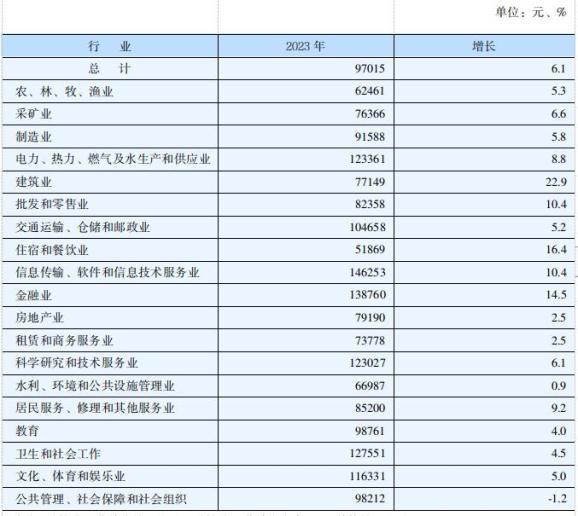 (四)城镇非私营单位就业人员年平均工资为97,015元,各行业城镇非私营单位就业人员年平均工资如下: