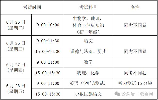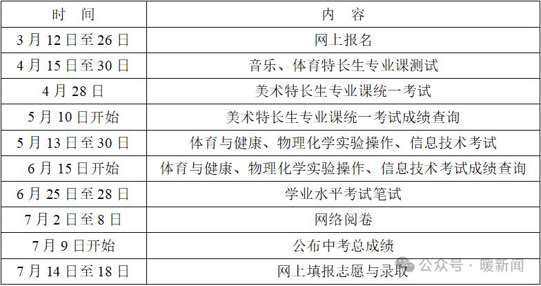 二、中考日程安排