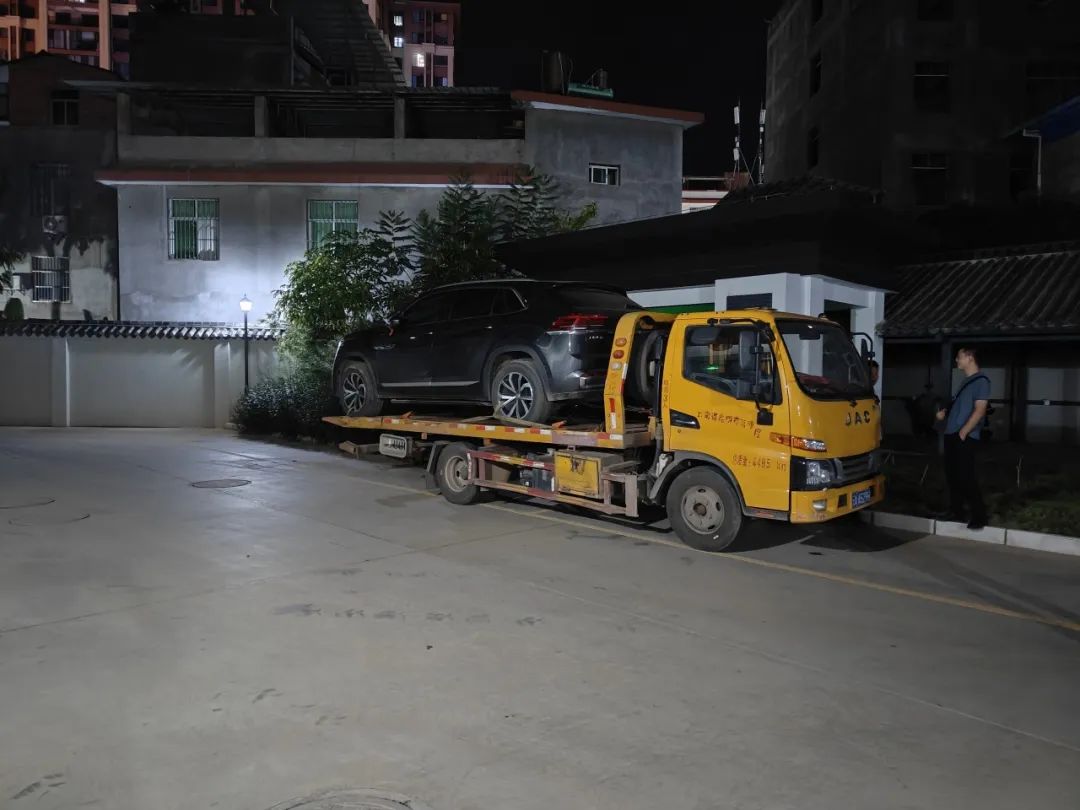 在执行干警接到申请人提供的线索后,第一时间赶到现场并联系被执行人,劝说其交出钥匙,配合法院扣押车辆。协商未果后,执行干警告知被执行人扣押车辆的相关事宜,决定对车辆采取强制扣押措施并联系拖车进行拖运。经过3个多小时操作,终于将被执行人车辆安全装上拖车扣押回法院,所有工作结束已经是晚上11点半了。