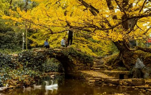 其二,不止一个老乡对我说,1000株以上的古银杏树林里,绝大多数是母银杏树。一棵棵都生长得秀美飘逸,多么诱人。她们这是为了吸引公银杏树的关注啊!因为一大片银杏林中,只有两棵是公银杏树……