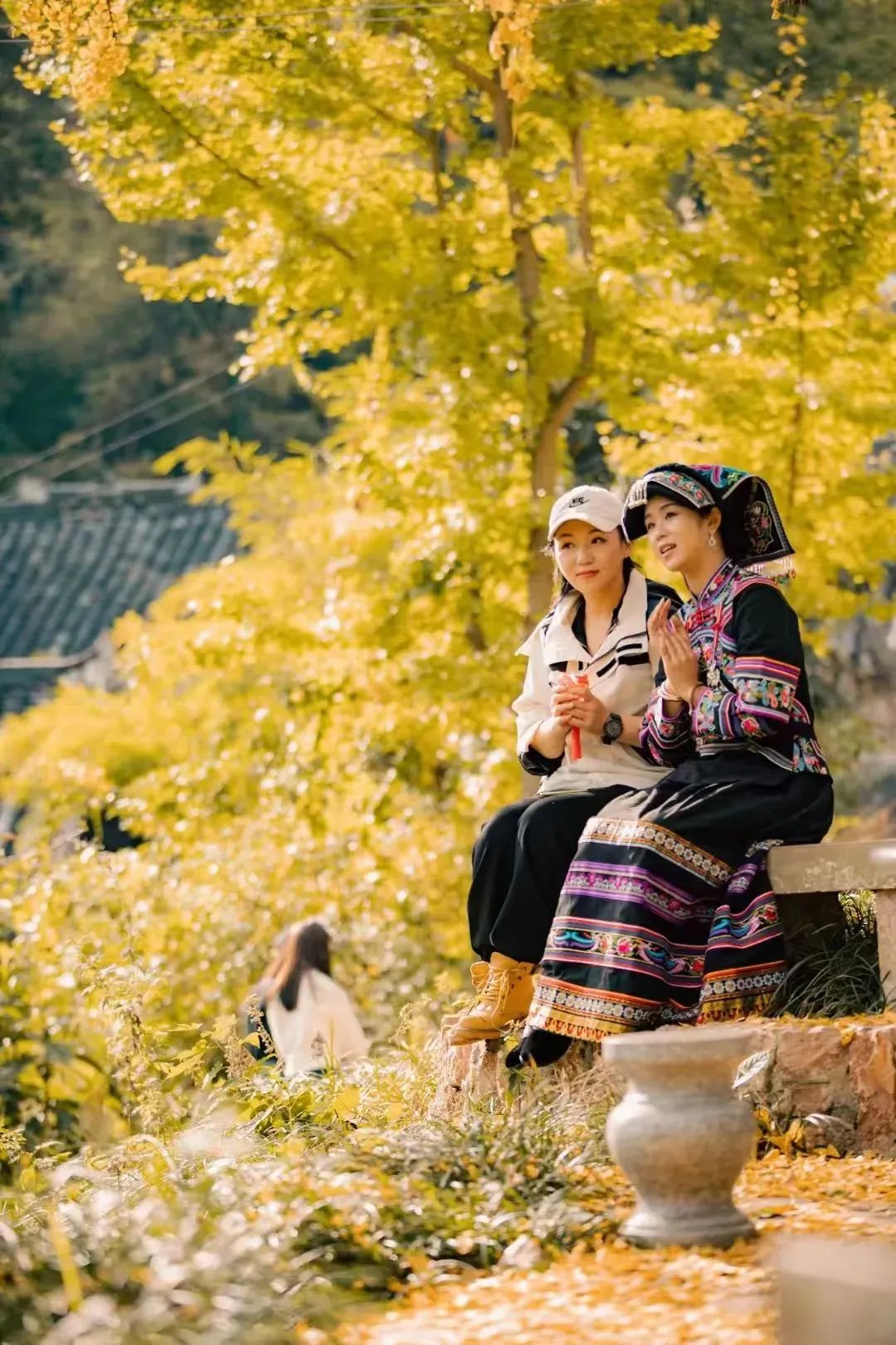 坐西朝东,依山傍水的农舍,掩映在古银杏树的光影、光斑里,组成了妥乐特有的“村中见树,树中见村”的美妙景象。这景象令人惊叹,这景象更令人陶醉。很多本想到这里来走马观花的客人,都舍不得离开,有的甚至还想多住几天,充分享受晨曦和晚霞,享受每个景点带来的喜悦。01.