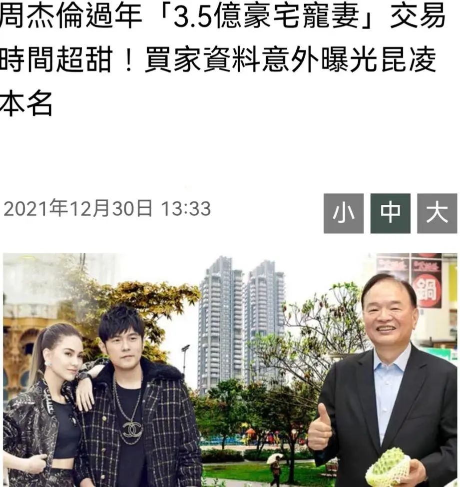 到底亏没亏这么多,无从考证,但换个角度想,说不定这就是周董示爱的一种方式呢,比如他还曾花3.5亿台币(折合人民币7800多万)给昆凌买过豪宅。