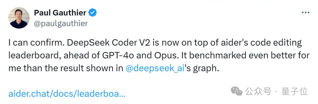 当时甚至有网友怒赞:DeepSeek-Coder-v2目前位居Aider代码编辑排行榜榜首(仅用了4天),领先于GPT-4o和Opus。