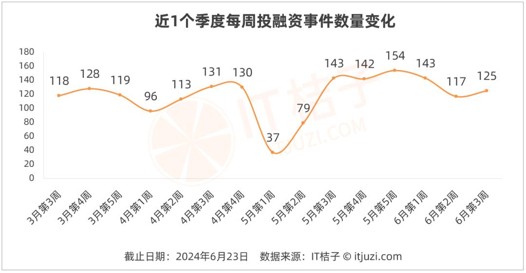 近一季度,新经济私募股权投资交易数量在周期性振幅中整体呈现平稳趋势。根据 IT 桔子统计,五一节假日之后,投资交易逐渐恢复往日节奏,上周共发生 125 起投资并购交易。