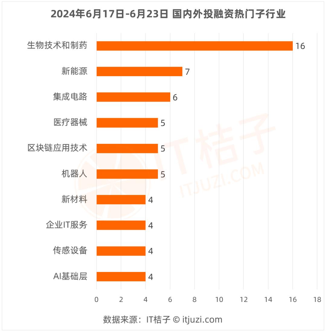 上周最受投资人追捧的赛道分别是生物技术和制药、新能源、集成电路、机器人、区块链应用技术、医疗器械、AI基础层、新材料等。