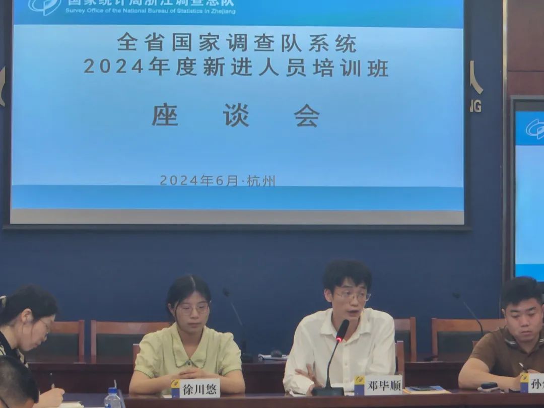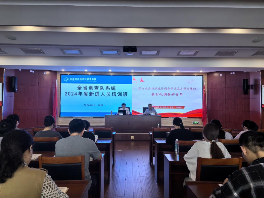 6月11日至14日,2024年全省调查队系统新进人员培训班在杭州举办,全系统近三年考入和调入的42名年轻干部参加集中培训。浙江调查总队党组书记、总队长张斌出席座谈会并讲话。