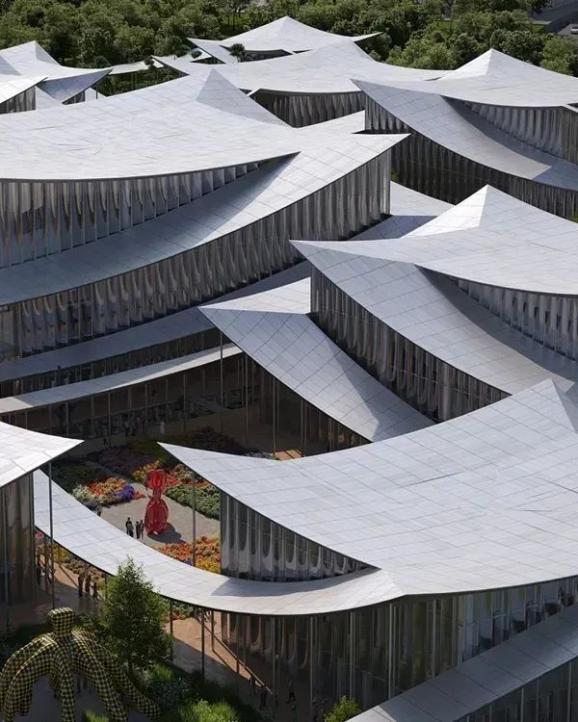 鳞次栉比的屋顶灵感来自传统坡屋顶,通过创新性材料,结合了传统精神与现代技术。场馆预计于今年年底竣工,2025年开启试运营,2026年正式对公众开放。