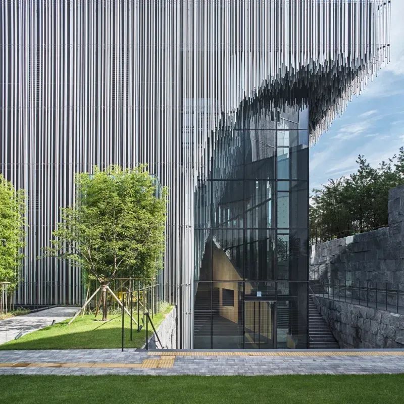 这座博物馆聚焦于声音相关的文化和艺术,展示了留声机发明以来近150年的音响发展历史,耗资1.5亿美元。建筑部分由隈研吾操刀,20000根细长的铝管垂直排列于立面,营造出光影渗透树林的效果,反映建筑与自然之间的关系。