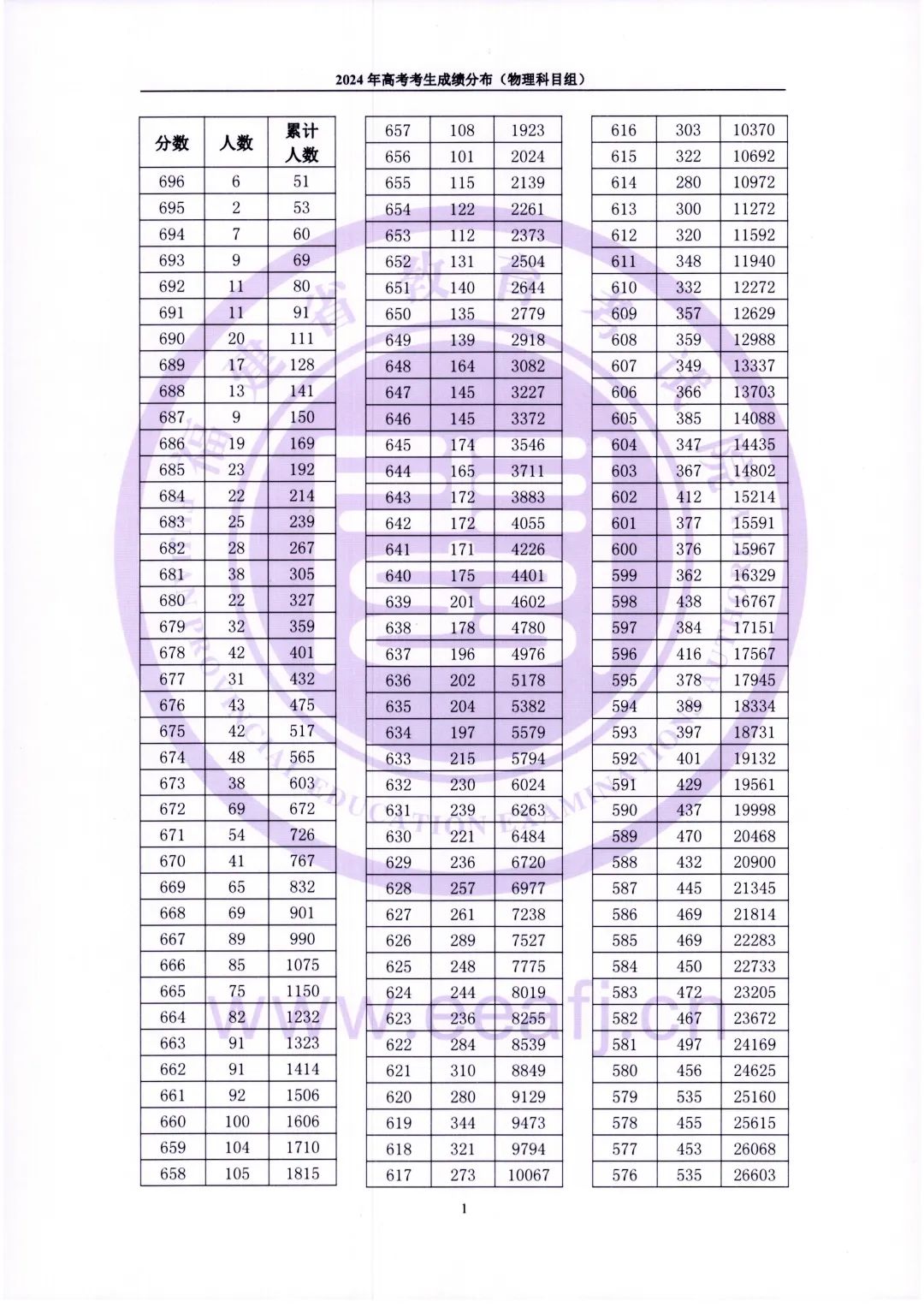 刚刚,福建省教育考试院发布2024年福建省高考考生成绩分布(含物理、历史科目组)表。具体内容如下: